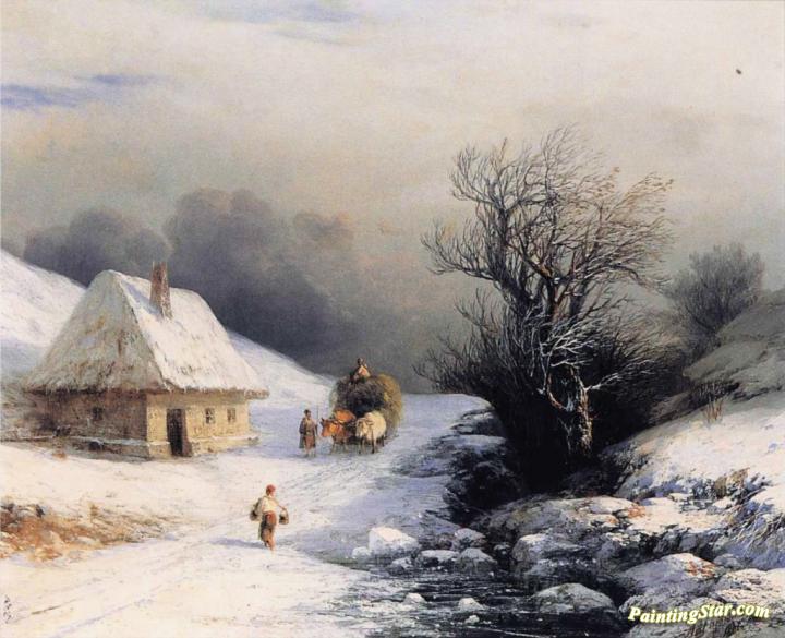Little Russian Ox Cart In Winter, Art Painting by Ivan Constantinovich Aivazovsky