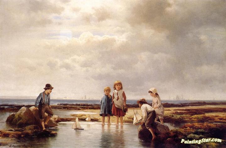 Little Sailors, Rockaway Beach, Art Painting by Edward Moran