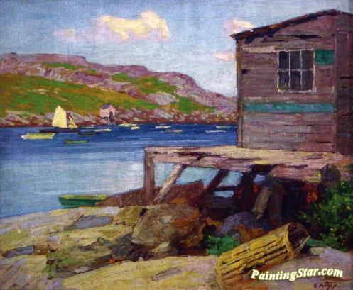 Lobster Shacks, Monhegan Island, Art Painting by Edward Potthast