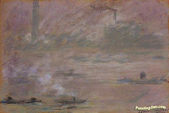 London, Boats on the Thames, Art Painting by Claude Oscar Monet