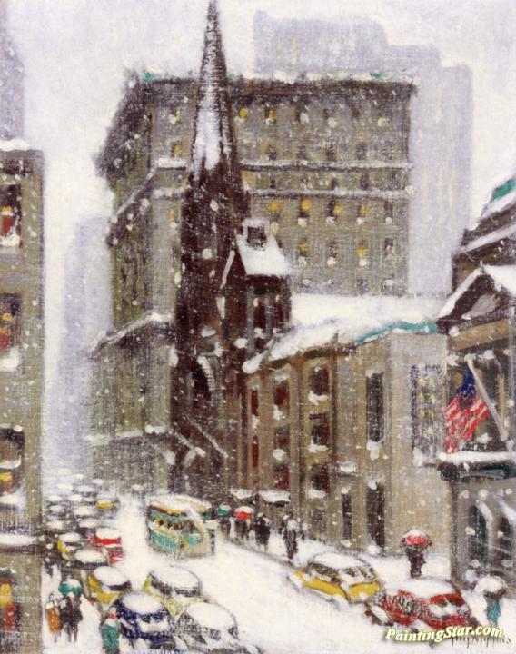 Looking Down Fifth Avenue, Winter, New York, Art Painting by Guy Wiggins