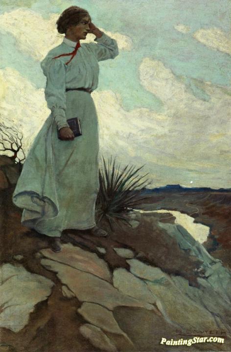 Louise Loved To Climb To The Summit On One Of The Barren Hills Flanking The River, And Stand There While The Wind Blew, Art Painting by Newell Convers (N.C.) Wyeth