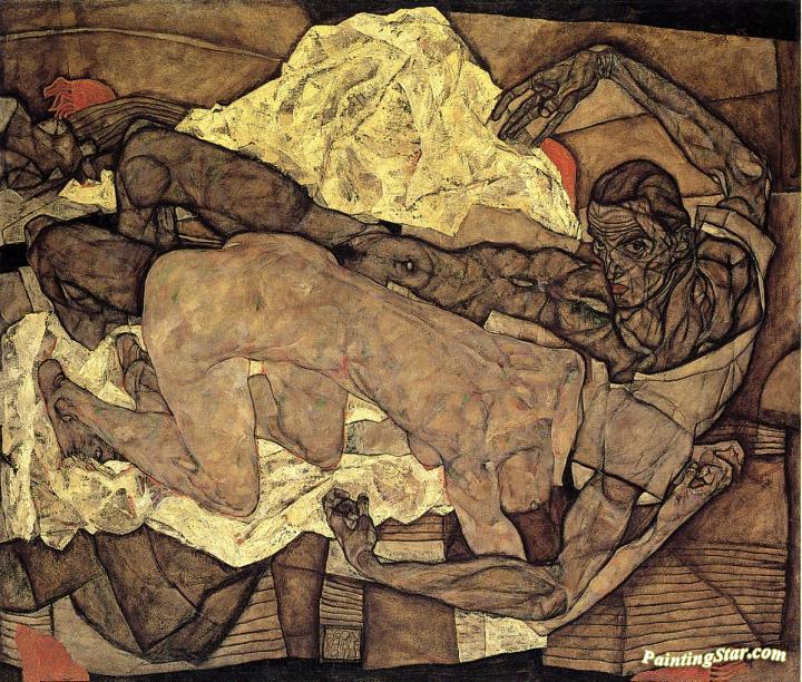 Lovers: Man and Woman I, Art Painting by Egon Schiele