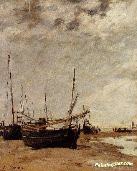 Low Tide, Grounded Sailboats, Art Painting by Eugène-Louis Boudin