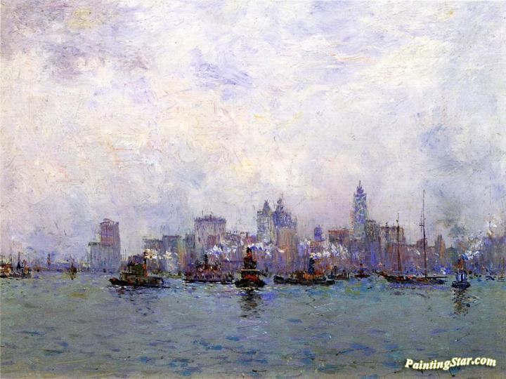Lower New York From Grace & Co.'s Pier, Art Painting by Paul Sawyier