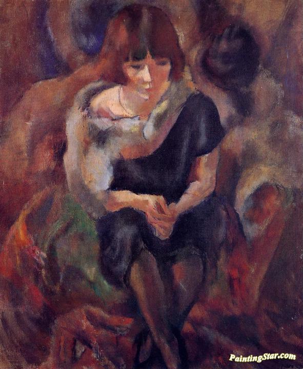 Lucy Wearing aa Fake Fur, Art Painting by Jules Pascin