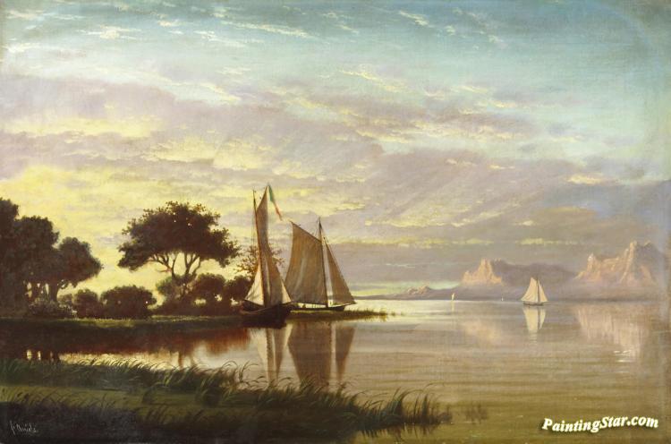 Luminous Sunset With Sailboats, Art Painting by Fortunato Arriola