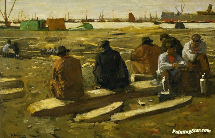 Lunch Break at the Building Site in the Van Diemenstraat in Amsterdam, Art Painting by George Heidrik Breitner