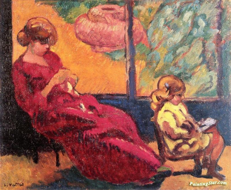 Madame Valtat Sewing And Her Son Jean, Art Painting by Louis Valtat