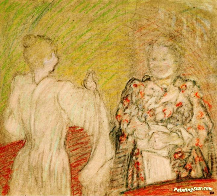 Madame Vuillard Speaking with a Girl, Art Painting by Edouard Vuillard