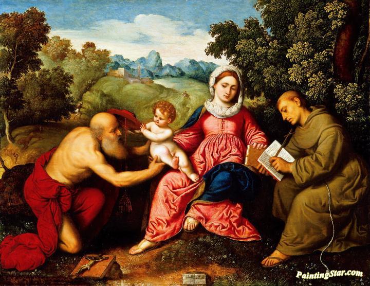 Madonna and Child with Saint Jerome and Saint Francis, Art Painting by Paris Bordone