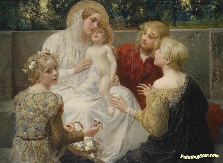 Madonna Mit Jesus Umgeben Von Kindern, 1896, Art Painting by Eduard Veith