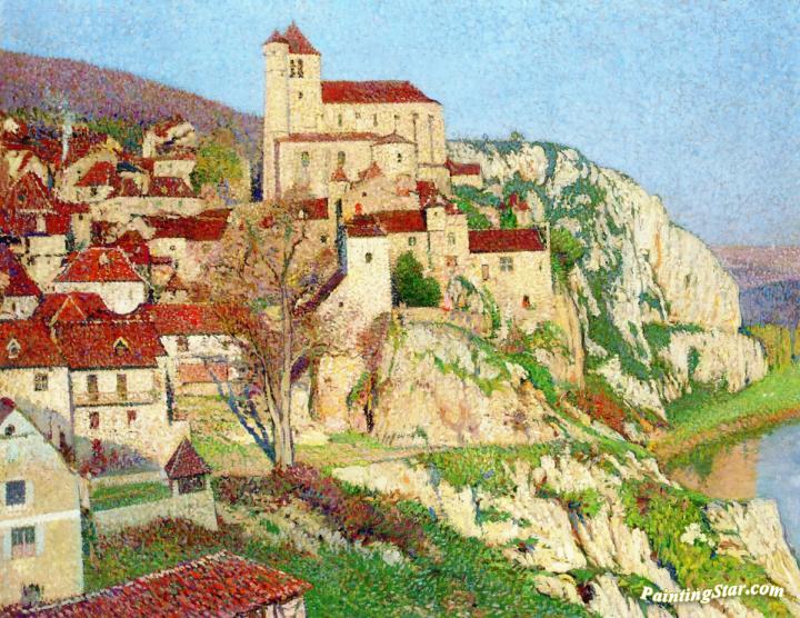 Maisons sur Falaise dans le Lot, Art Painting by Henri Martin
