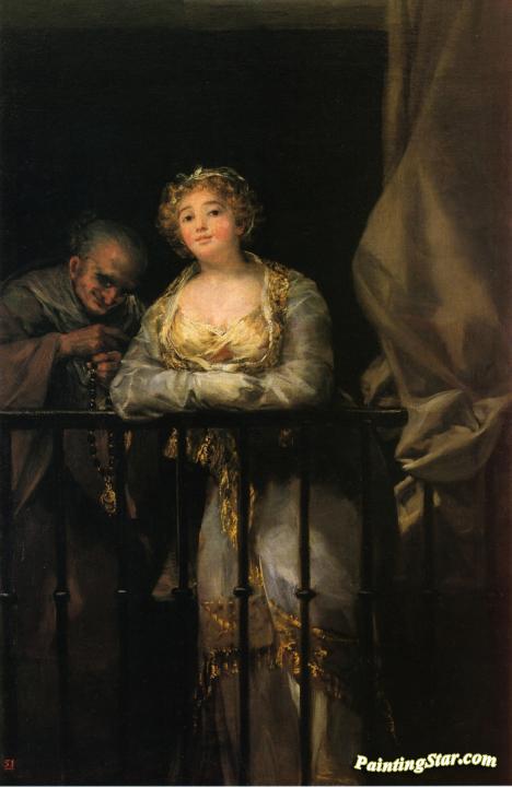 Maja And Celestina On A Balcony, Art Painting by Francisco Jose de Goya y Lucientes