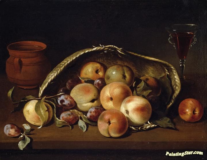 Malocotones Basket And Plums, Art Painting by Pedro de Camprobin