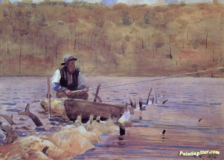 Man in a Punt, Fishing, Art Painting by Winslow Homer