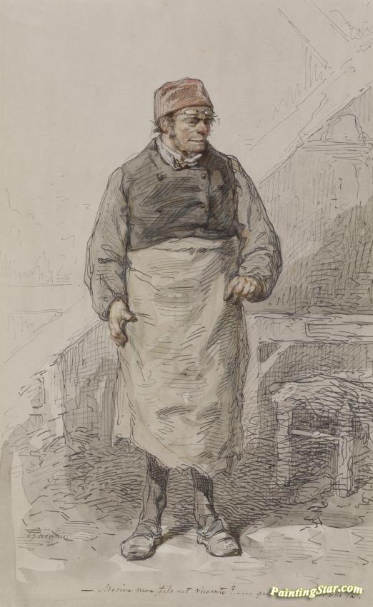 Man In Apron And Cap,1855, Art Painting by Paul Gavarni