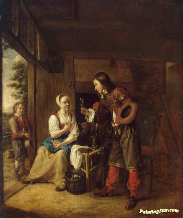 Man Offering a Glass of Wine to a Woman, Art Painting by Pieter de Hooch