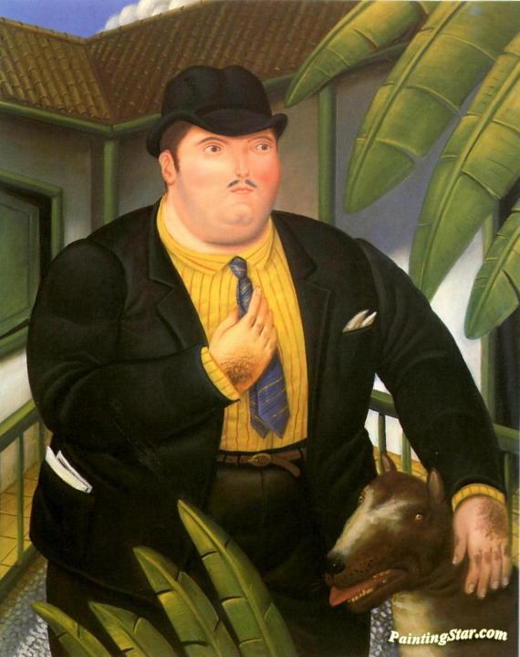 Man With Dog, Art Painting by Fernando Botero