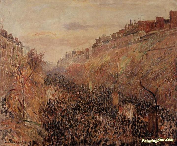 Mardi-Gras, Sunset, Boulevard Montmartre, Art Painting by Camille Pissarro