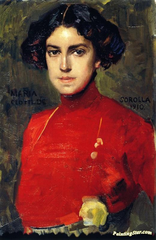 Maria In A Red Blouse, Art Painting by Joaquin Sorolla y Bastida