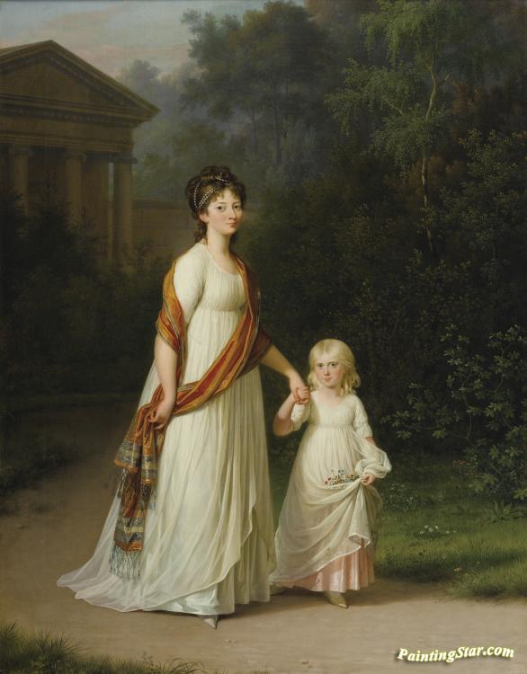 Marie-sophie-frederikke, Princess Of Denmark And Her Daughter, Princess Caroline, Art Painting by Jens Juel