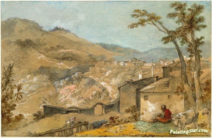 Marino and the Alban Hills, Art Painting by Charles-Joseph Natoire