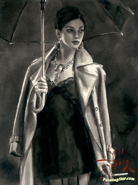Marissa With Umbrella, Art Painting by Fabian Perez