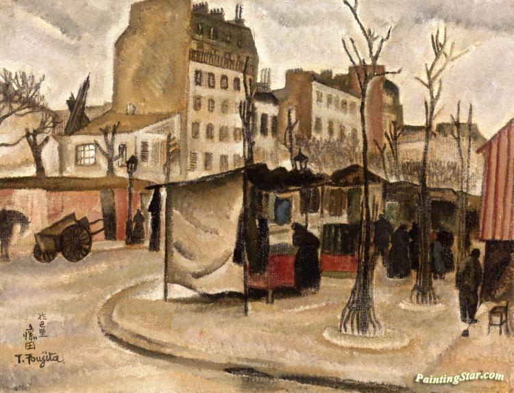 Market in Paris, Art Painting by Tsuguharu Foujita