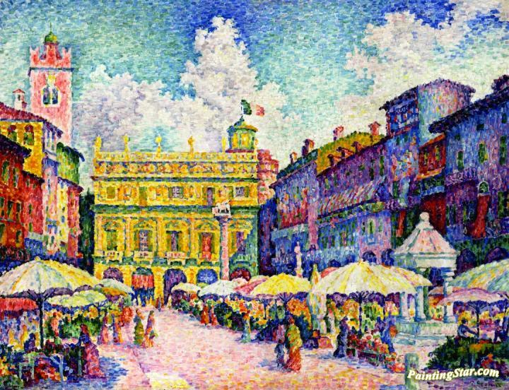 Market in Verona, Art Painting by Paul Signac