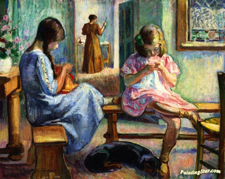 Marthe And Nono Sewing, Art Painting by Henri Lebasque