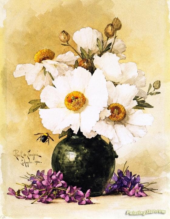 Matilija Poppies and California Violets, Art Painting by Raoul de Longpre