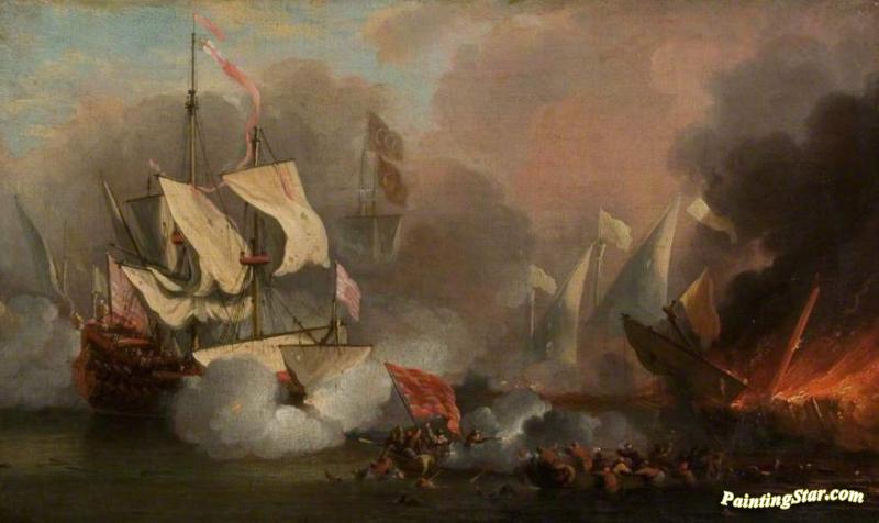 Men O' War In Action, Art Painting by Willem van der Velde the Elder