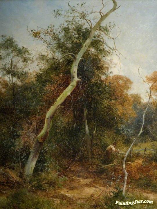 Mending the Fence, Sutton Park, Art Painting by David Bates