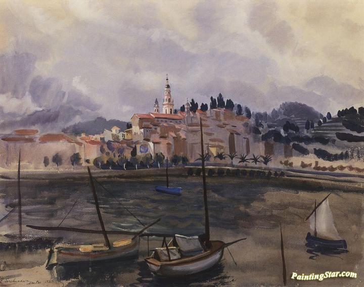 Menton. View of the city from the harbor, Art Painting by Zinaida Serebriakova