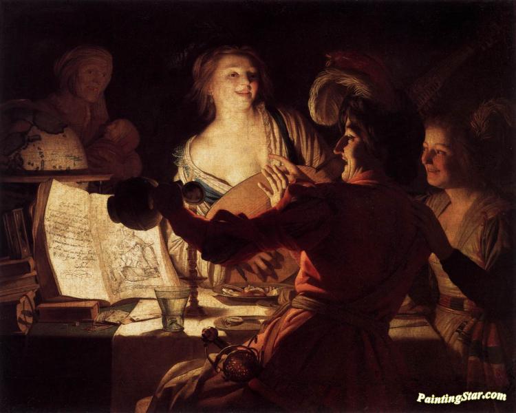 Merry Company,1623, Art Painting by Gerard van Honthorst