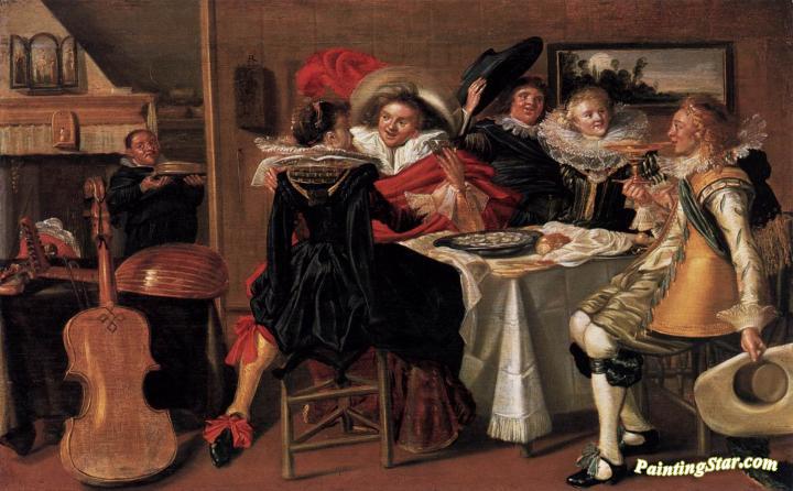 Merry Company at Table, Art Painting by Dirck Hals