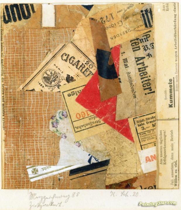 Merzzeichnung 85: Zig-zag Red, Art Painting by Kurt Schwitters