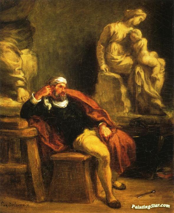 Michelangelo in His Studio, Art Painting by Eugène Delacroix