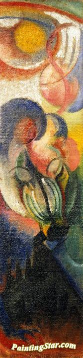 Middle part of a Three-part Firescreen with Landscape and animal like Elements, Art Painting by Franz Marc