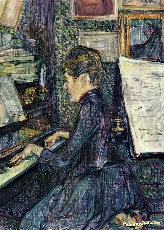 Mille. Dihau Playing The Piano, Art Painting by Henri de Toulouse-Lautrec