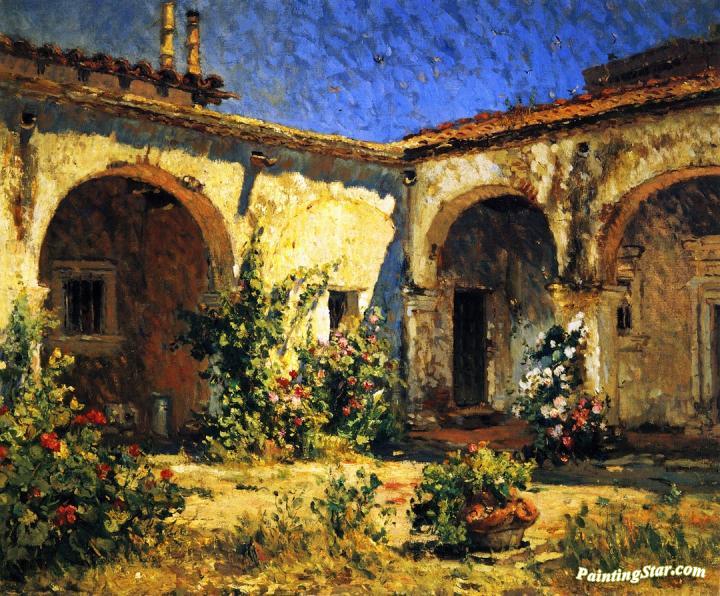 Mission Courtyard (san Juan Capistrano), Art Painting by Colin Campbell Cooper