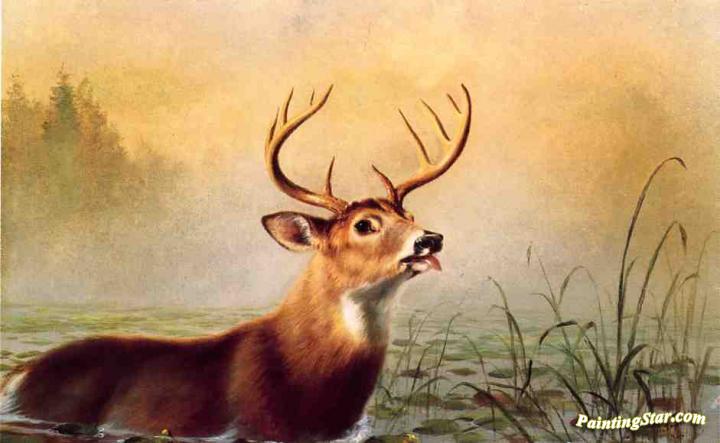 Misty Morning Stag, Art Painting by Arthur Fitzwilliam Tait
