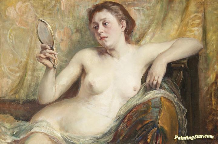 Model With Mirror, Art Painting by Hildegard Katarina Thorell