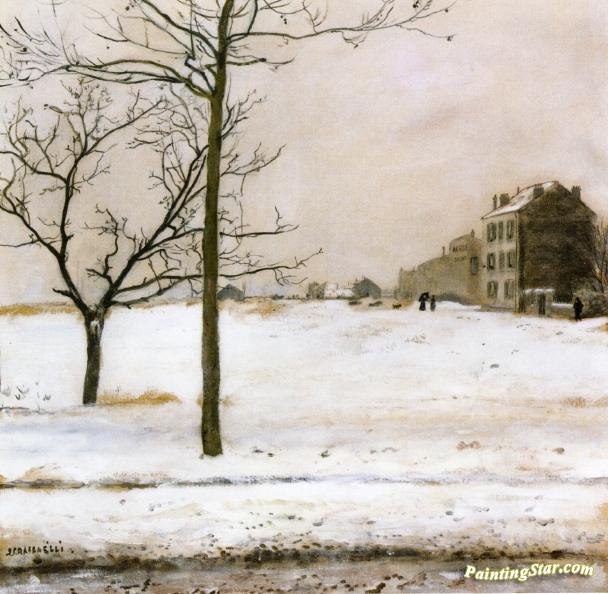 Montmartre under the Snow, Art Painting by Jean-François Raffaëlli
