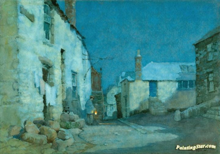 Moonlight, Norway Square, St Ives, Art Painting by Albert Moulton Foweraker