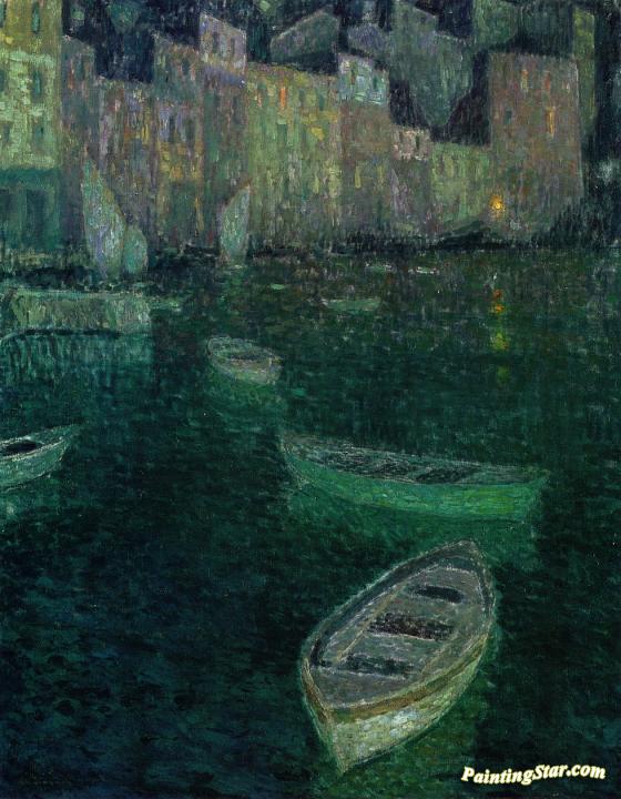 Moonlight on the Harbor, Art Painting by Henri Le Sidaner
