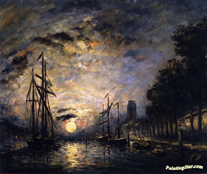 Moonlight Over A Canal, Dordrecht, Art Painting by Johan Berthold Jongkind