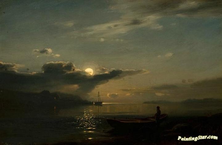 Moonlight Over Bankefjord, Art Painting by Amaldus Clarin Nielsen