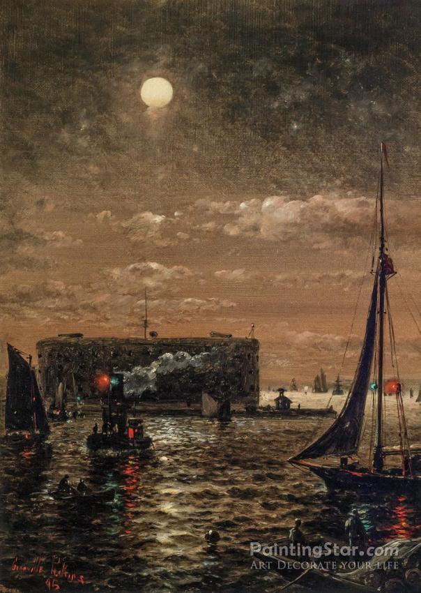 Moonlight Over New York Harbor, 1895, Art Painting by Granville Perkins